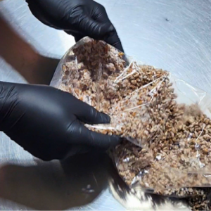 - Sterile 2.5-pound rye grain bags with an injection port + 3 pounds of pasturized CVG