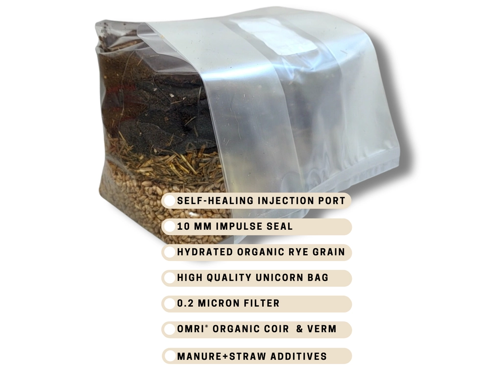 Enjoy the flexibility to fruit directly from the bag or transfer to a monotub when fully colonized.
