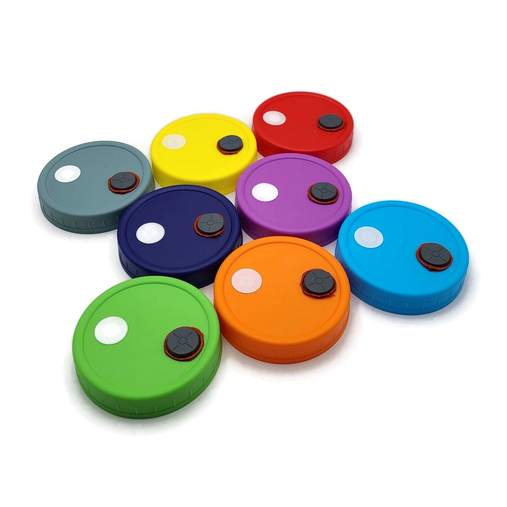 Our wide mouth 8-Pack multicolor modified grain jar lids specifically cater to mushroom cultivation enthusiasts and professionals. These lids serve as an essential tool in the world of mycology, offering a leak-proof and reliable solution for your grain jar needs.