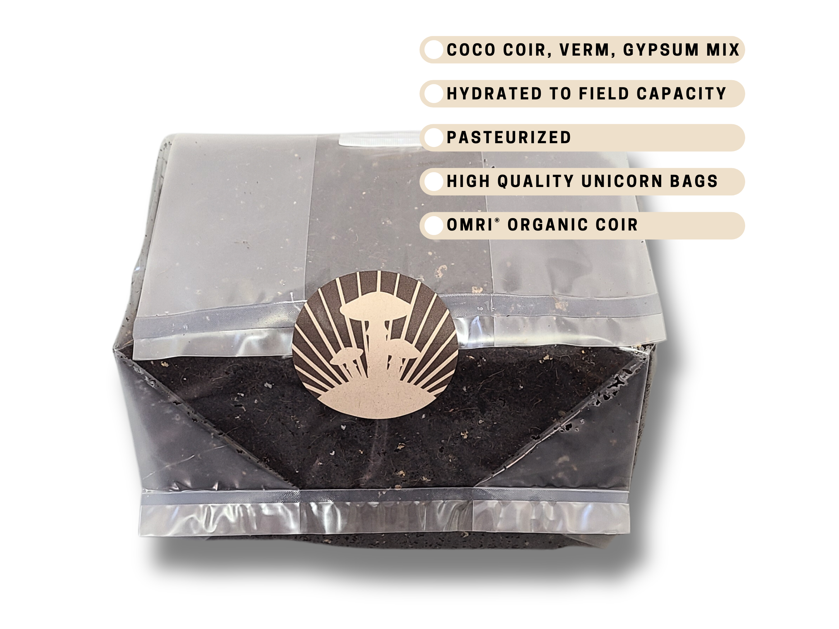 • Optimal Moisture: Perfectly hydrated to maintain the right moisture balance for mushroom cultivation.